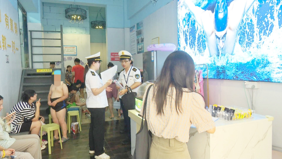 检查中,检查人员先后对金源、优塑、生态体育休闲公园等多家游泳场所进行了100%全覆盖监督检查,重点检查游泳场馆是否持有卫生许可证、从业人员是否持有健康证、泳池水质自检公示情况、泳池水质循环净化消毒情况、公共用品用具消毒情况等。通过检查,发现部分游泳场所存在水质检测不及时、消毒设备运作不规范以及卫生管理制度执行不够严格等问题。