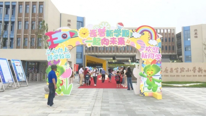 实验小学新城校、实验初中新城校已正式启用。当天上午8:00,实验小学新城校区大门口,家长们陆陆续续地带着孩子步入校园。绚丽的拱门、红色的地毯、斑斓的气球、祝福的展牌……处处洋溢着迎新的喜庆氛围。欢迎仪式上,老师们面带微笑,给每一位新同学都扎上红丝带、点上额头朱砂。孩子们的脸上满是兴奋与期待,他们将在这里开启全新的学习之旅。