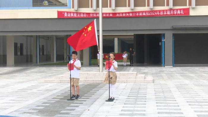 在实验初中新城校区,这里同样举行了隆重的迎新和升旗仪式。
