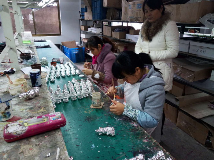 一次,厂里接到一批圣诞老人订单,红帽子、白胡子、圆滚滚的肚子,好不可爱,但是在绘画圣诞老人脸部时,闵宽云却犯了难。“当时的那个工艺产品尺寸不大,但是细节却很多。要在那么小的一块空地上精准地刻画出圣诞老人的五官,难度很大。”闵宽云回忆道。为了画好圣诞老人,她一有时间就练习,甚至躺在床上的时候还在脑海里一遍遍勾勒,经过半个月的努力,闵宽云攻下了这个难关,一个个圣诞老人在她的笔下“活”了起来。