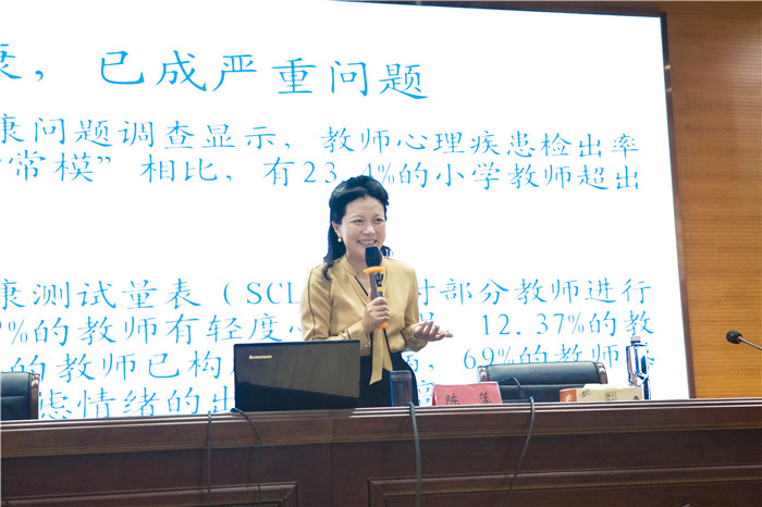 6日上午,市教研室陈萍主任以《健康课堂的教学愿景与实施策略》为主题,倡导基于学生身心发展需要的民主、自主、科学的健康课堂。陈主任从许多成功案例入手,凝练当前语文课堂的价值追求,引导教师关注教与学的关系变革,提出健康课堂的实施要素和操作步骤。