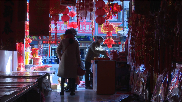 虽然生意量受到影响,但记者看到,商户迎年的热乎劲却没有减少,来人问声好,再见送祝福,让顾客开心地来,高兴地去。除了街边小店,各大商超也是准备充足迎新年。记者在利群时代超市看到,喜庆的年货大街把居民平时喜爱较多的商品全部聚在了一起,分类摆放。顾客想买什么一目了然,既节约了购物时间,又给顾客增加了选择性、对比性。