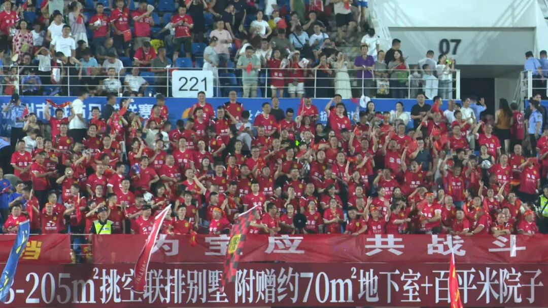 赛场上球员拼尽全力,看台上的球迷同样热情不减,球迷们全程高举“宝应必胜”、“为家乡而战”的横幅,齐声呐喊助威贯穿全场,成为球员们最坚实的后盾。终场哨响后,球员们第一时间奔向看台,集体鞠躬向球迷致谢,红色的球衣与红色的球迷服交织在一起,汇成温暖的海洋,成为全场最动人的瞬间。