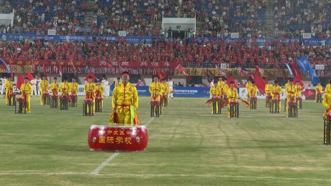 比赛开始前,由“鼓舞飞扬”、“足跃舞旋”、“艳阳莲湘”、“歌唱祖国”等四个篇章组成的暖场活动,营造了别具一格的“扬超”球场。“体育+文化”深度融合、传统与现代共舞,让观众在感受足球激情的同时,也欣赏到别样的文化盛宴。中场休息时,“律动青春”节拍下,健美操队员们活力四射,富有激情的舞蹈动作让赛场变成欢乐的海洋。随后,神话元素“八仙”缓缓登场,何仙姑抱荷而来,台下掌声愈烈,这场精心筹备的文化盛宴赢得了全场观众和参赛人员的阵阵掌声和一致好评。(记者:房恒韬 莫斐 谢国扬 王露露 )