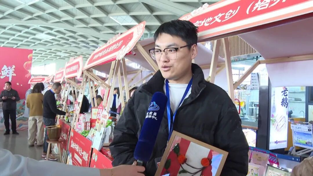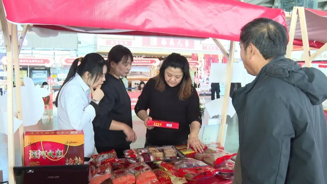 活动现场同步展出了荷乡非遗作品与文创产品,吸引旅客驻足。