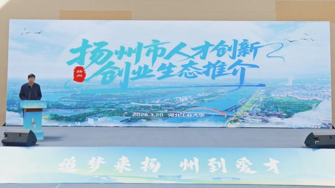 王利民在致辞中表示,河北工业大学与扬州渊源深厚、合作紧密,近三年已有400余名毕业生赴江苏就业创业,学校多位专家教授扎根扬州,为当地产业转型升级贡献了“工大智慧”,一条名为“机遇”的运河,正从扬州延伸至每位学子脚下。期待双方以此次活动为契机,深度践行“优势互补、资源共享、互利共赢”的美好愿景,让津门学子以创新呼应发展,乘时代之势、驭城市之机,在扬州这片热土上大显身手、共谱华章。