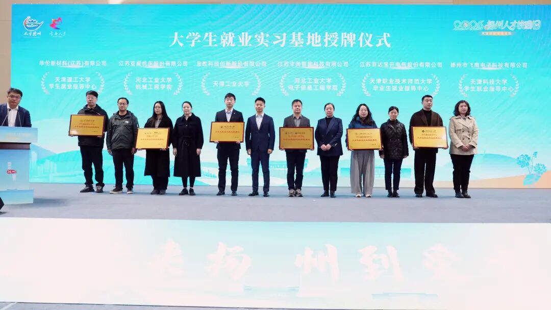 现场,扬州市高校引才联络站揭牌;河北工业大学技术转移中心(宝应)分中心成功签约;天津工业大学、河北工业大学电子信息工程学院、河北工业大学机械工程学院、天津职业技术师范大学、天津理工大学、天津科技大学与扬州6家重点企业建立大学生就业实习基地。