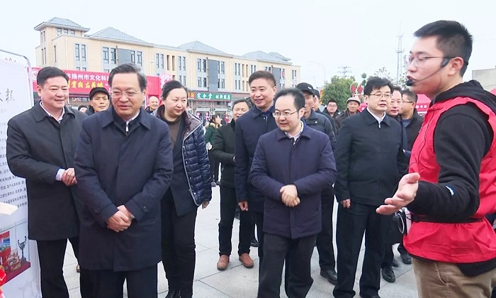 15日下午,由市委宣传部、市文明办主办,县委宣传部、泾河镇党委政府协办的2020年扬州市文化科技卫生“三下乡”暨“全民阅读春风行动”在我县正式启动。省文明办副主任、省委宣传部宣教处处长公永刚,共青团江苏省委副书记潘文卿,扬州市委常委、市委秘书长韩骅,县领导闫伟、徐建林、杨洪国、王辉森、周新华等参加活动。