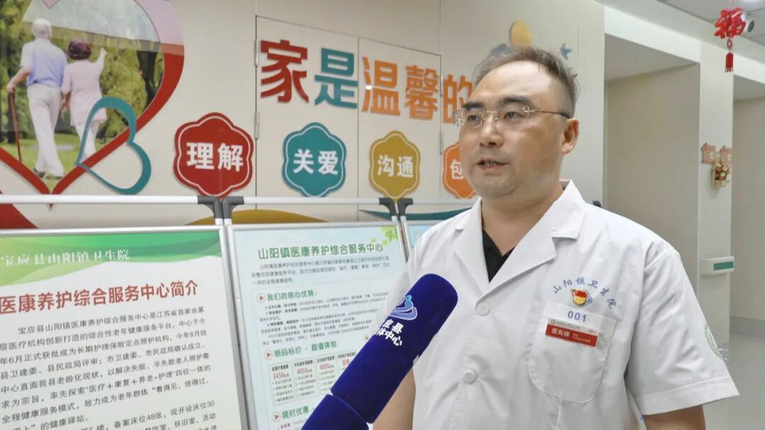 山阳镇卫生院院长董先锋:宝应县山阳镇医康养护综合服务中心为公办公益机构,以解决失能,半失能老人照顾需求为宗旨。中心备案床位48张,现开放床位30张,其中长护险床位20张。中心拥有执业医师、执业护士、康复师的专业服务团队。中心采用适老化改造、智能化管理、温馨化服务,为全县老人提供医疗、康复、养老、照护四位一体的全程健康服务。